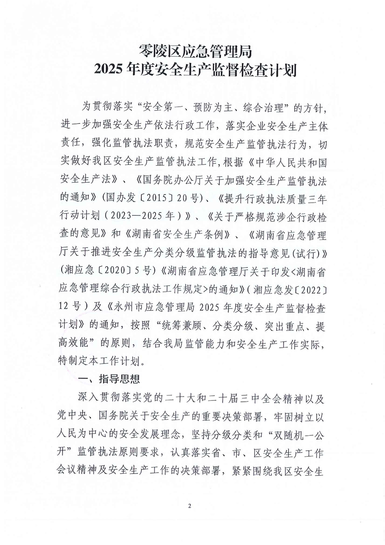 2025年度安全生产监督检查计划