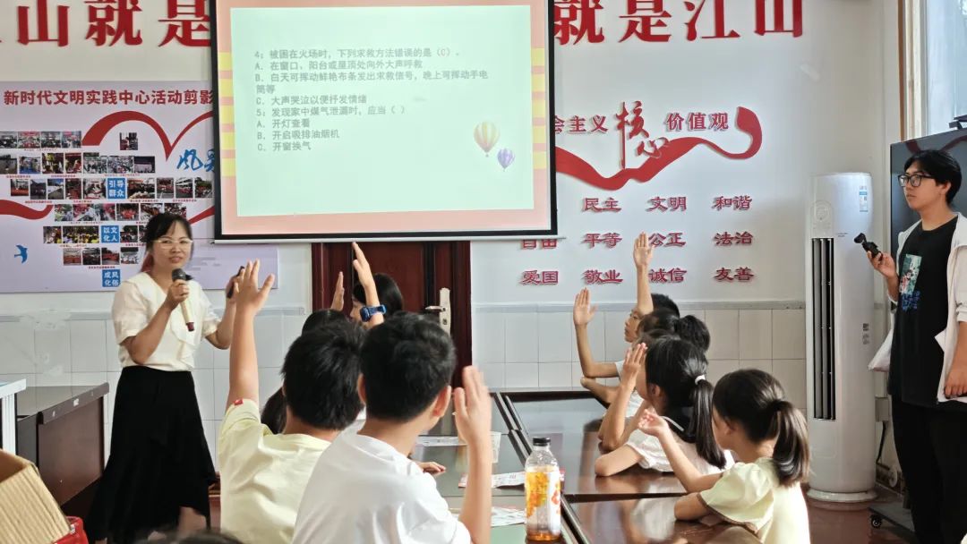 活动还设置了安全知识竞答环节。工作人员依托涵盖禁毒、消防、防溺水等内容的“安全知识题库”,组织现场抢答。孩子们积极举手、对答如流,在紧张活泼的竞赛氛围中巩固了所学知识。