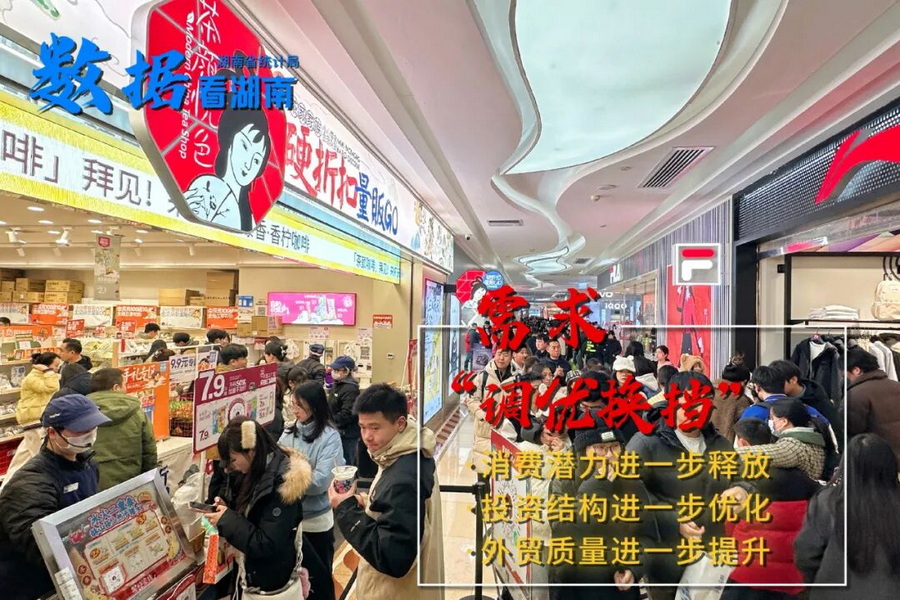 “以旧换新”政策赋能,“首发经济”“智慧消费”场景焕新,“湘超”IP强势破圈,消费“一池春水”奔涌不息。全省社会消费品零售总额21204.59亿元,同比增长3.6%。“以旧换新”相关商品零售额增长26.4%,其中家具类零售额增长24.9%、家电类零售额增长23.1%、新能源汽车零售额增长9.0%。