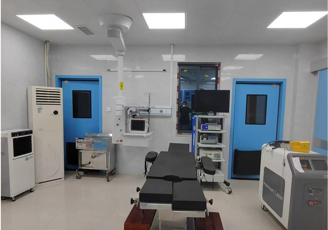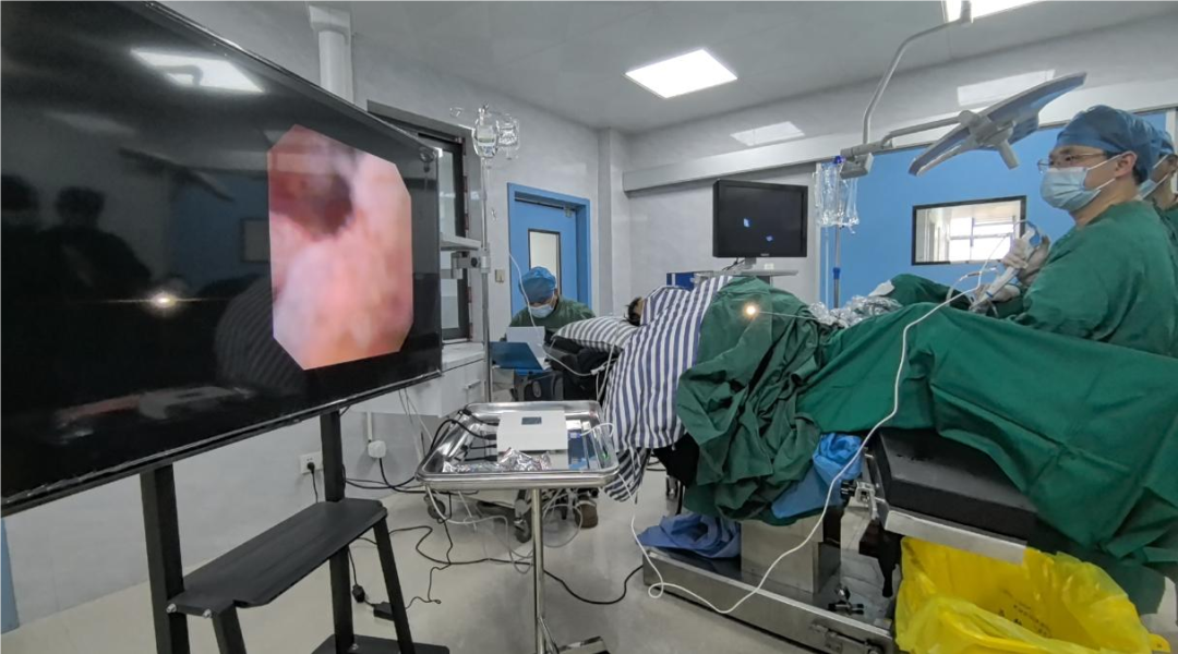 无影灯下,主刀医生、副院长王先义全神贯注地操作着腔镜设备。“结石位置已找到,准备激光碎石。”手术团队配合默契——助手精准递送器械,麻醉师紧盯监护仪数据,护士熟练准备后续物品。手术室里,只听见仪器规律的提示音和医生简短的交流声。