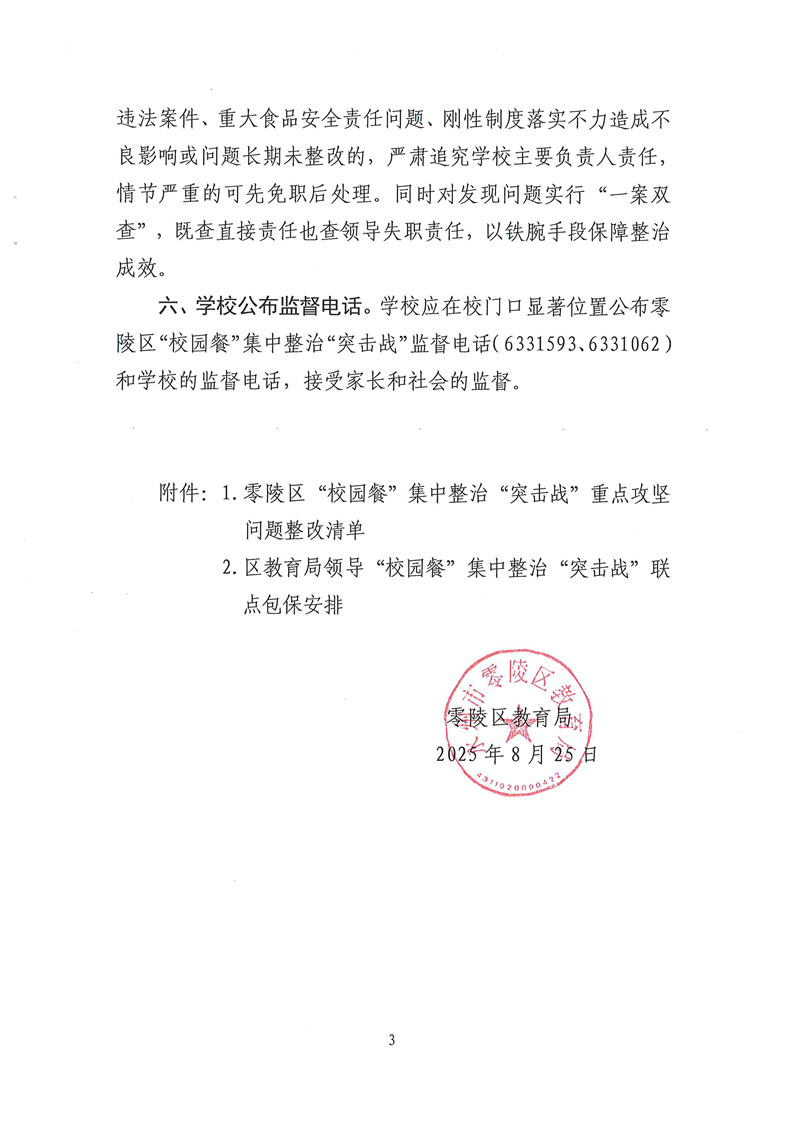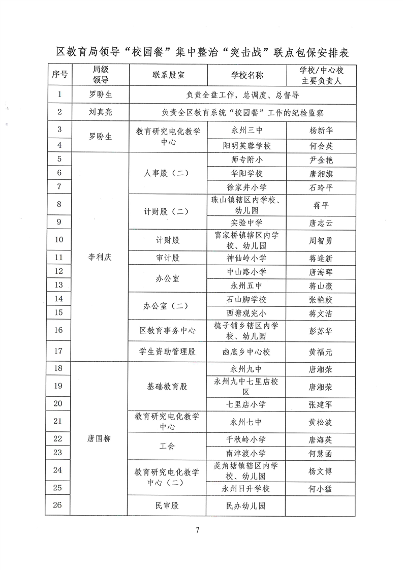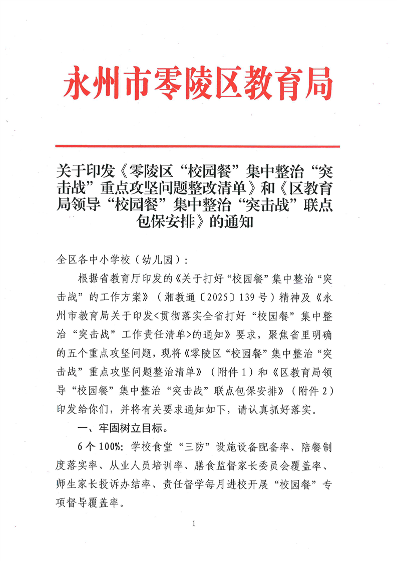 关于印发《零陵区“校园餐”集中整治“突击战”重点攻坚问题整改清单》和《区教育局领导“校园餐”集中整治“突击战”联点包保安排》的通知