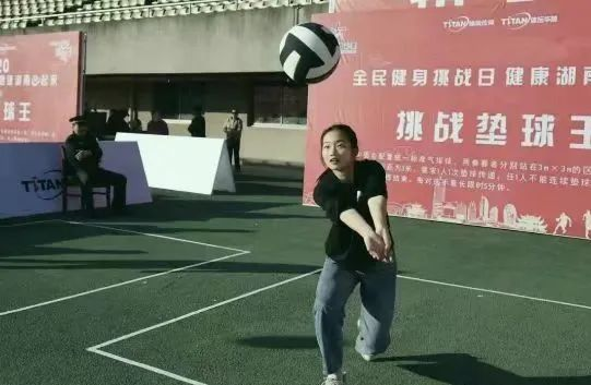 竞赛办法:参赛者在长5m、宽3m的区域内进行传球,两人间距为3米。两人要求1人1次垫球传递,任1人不能连续踢球2次。球落地或限定时间到,挑战即结束。