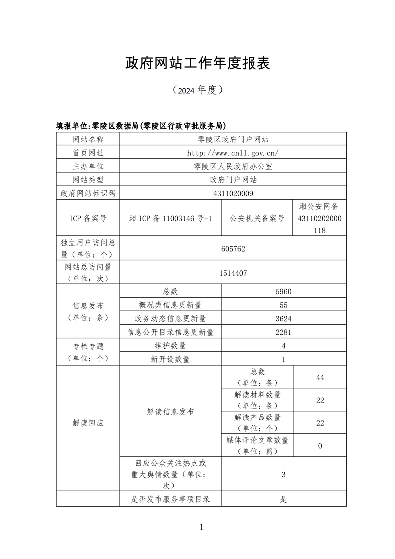 2024年零陵区政府网站工作年度报表