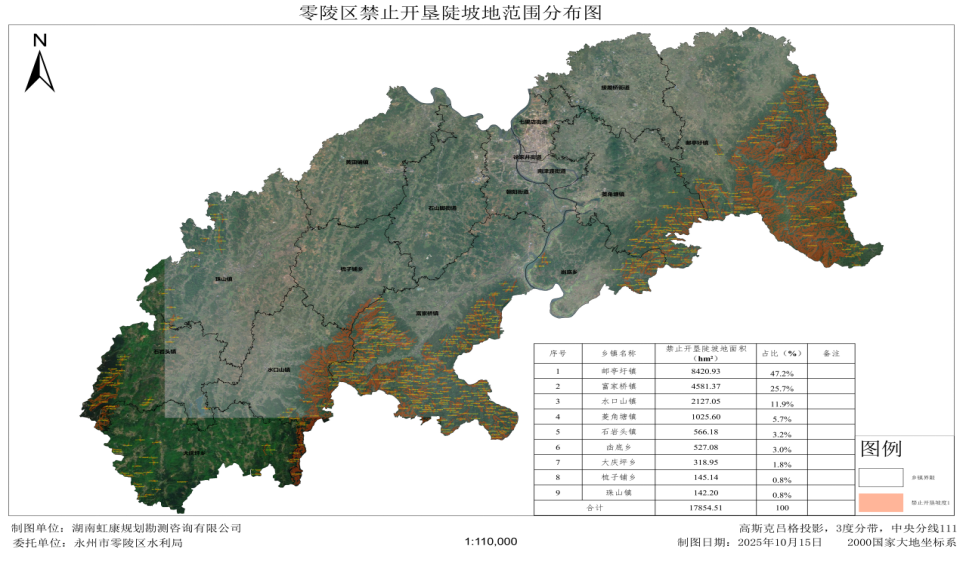 二、全区划定禁止开垦陡坡地面积为17854.51公顷,其中邮亭圩镇8420.93公顷、富家桥镇4581.37公顷、水口山镇2127.05公顷、菱角塘镇1025.60公顷、石岩头镇566.18公顷、凼底乡527.08公顷、大庆坪乡318.95公顷、梳子铺乡145.14公顷、珠山镇142.21公顷。
