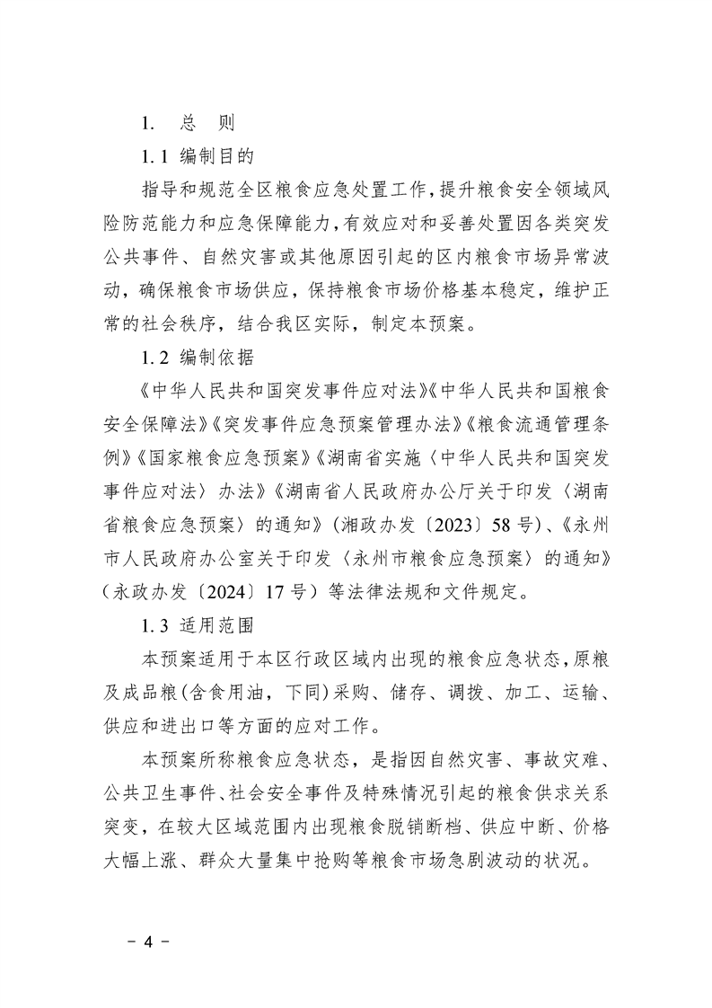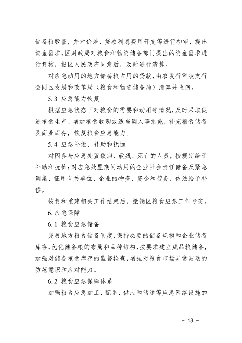 永州市零陵区人民政府办公室关于印发《零陵区粮食应急预案》的通知