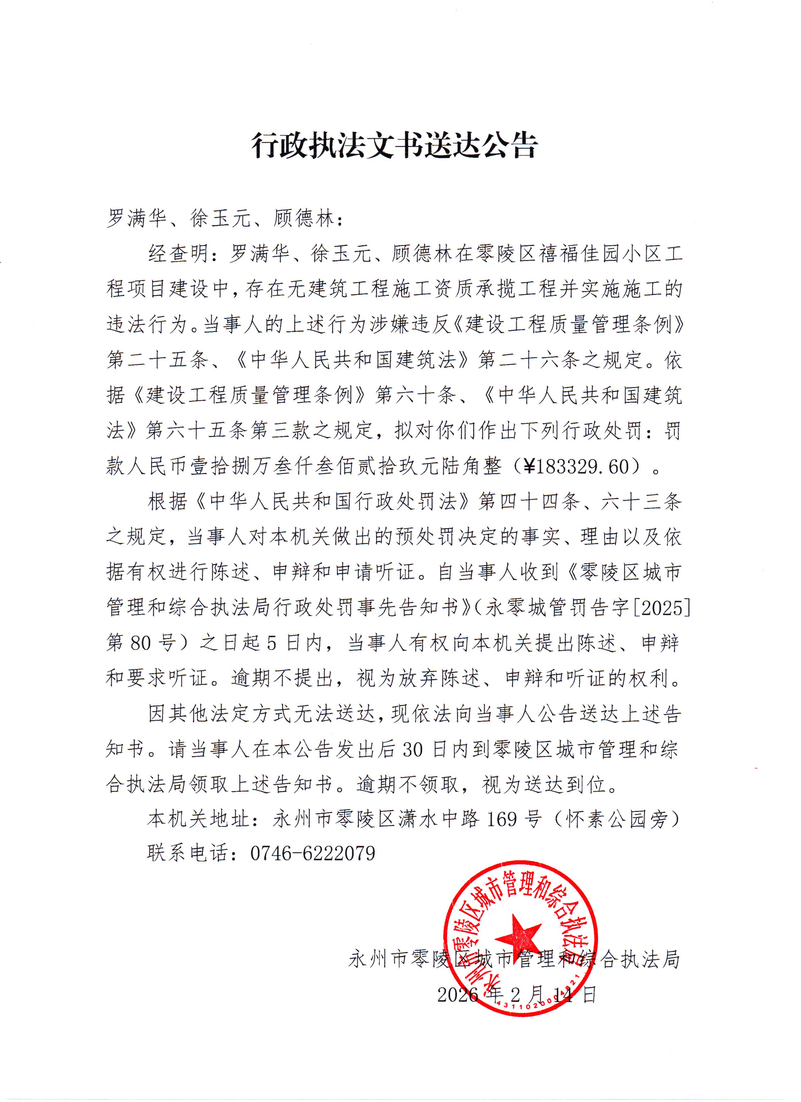 行政执法文书送达公告(罗满华、徐玉元、顾德林)