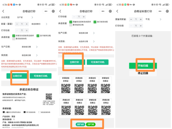 (二)出具标签合格证对于小批量包装产品,生产主体可选择所售产品“打印合格证”选项,按下图操作,可按标准样式格式打印标签合格证,加贴至产品包装。