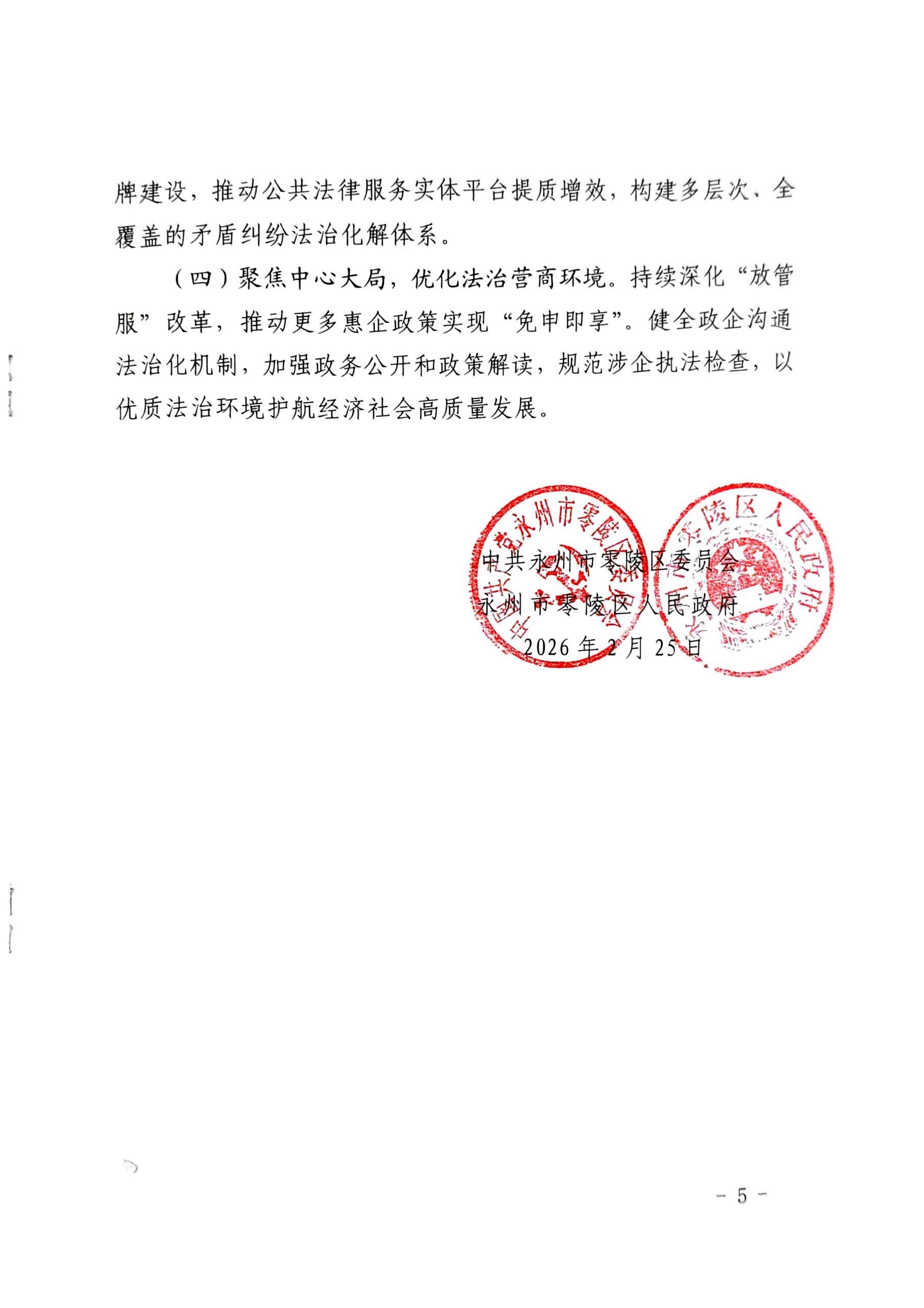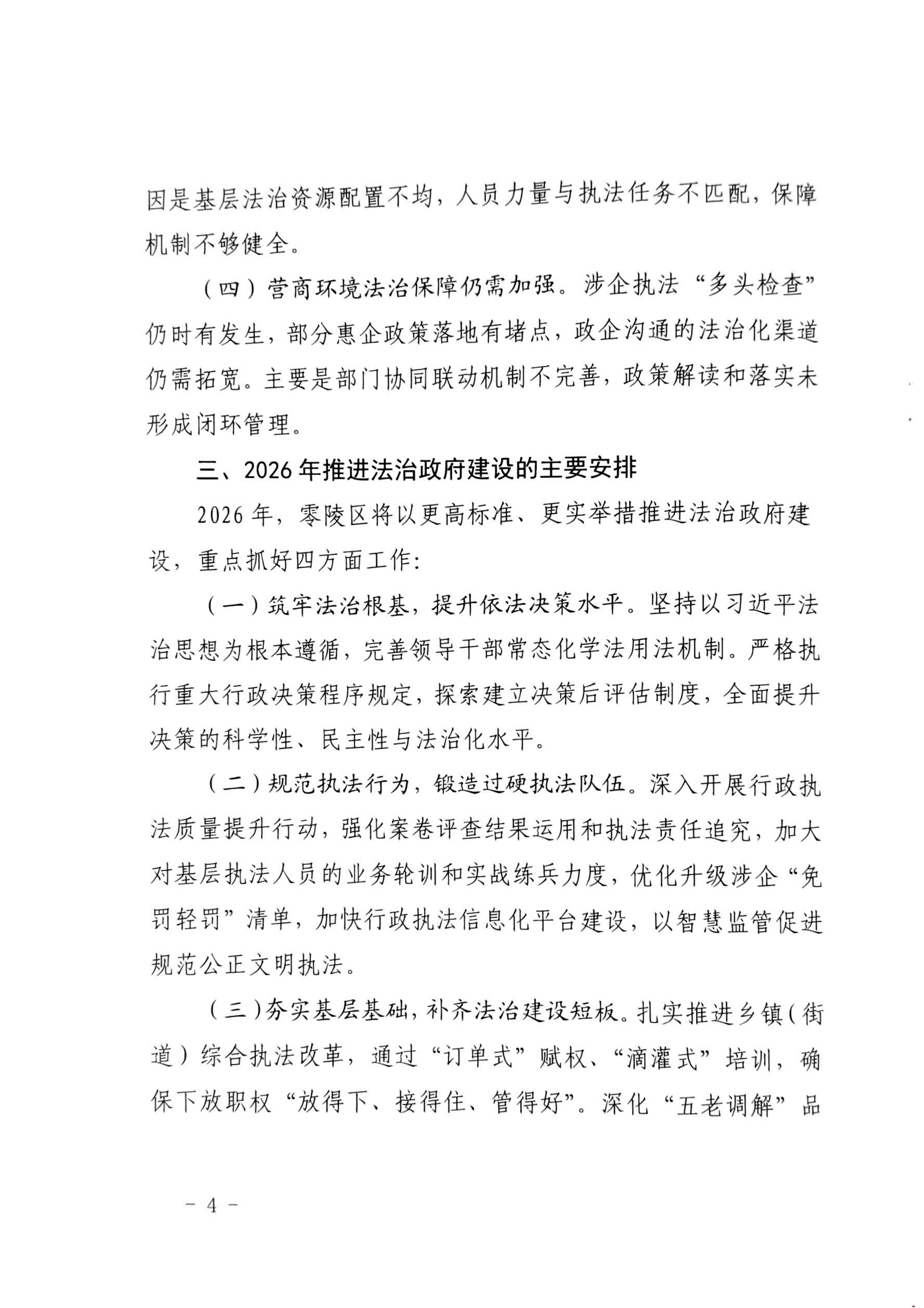 中共永州市零陵区委永州市零陵区人民政府关于2025年推进法治政府建设情况的报告