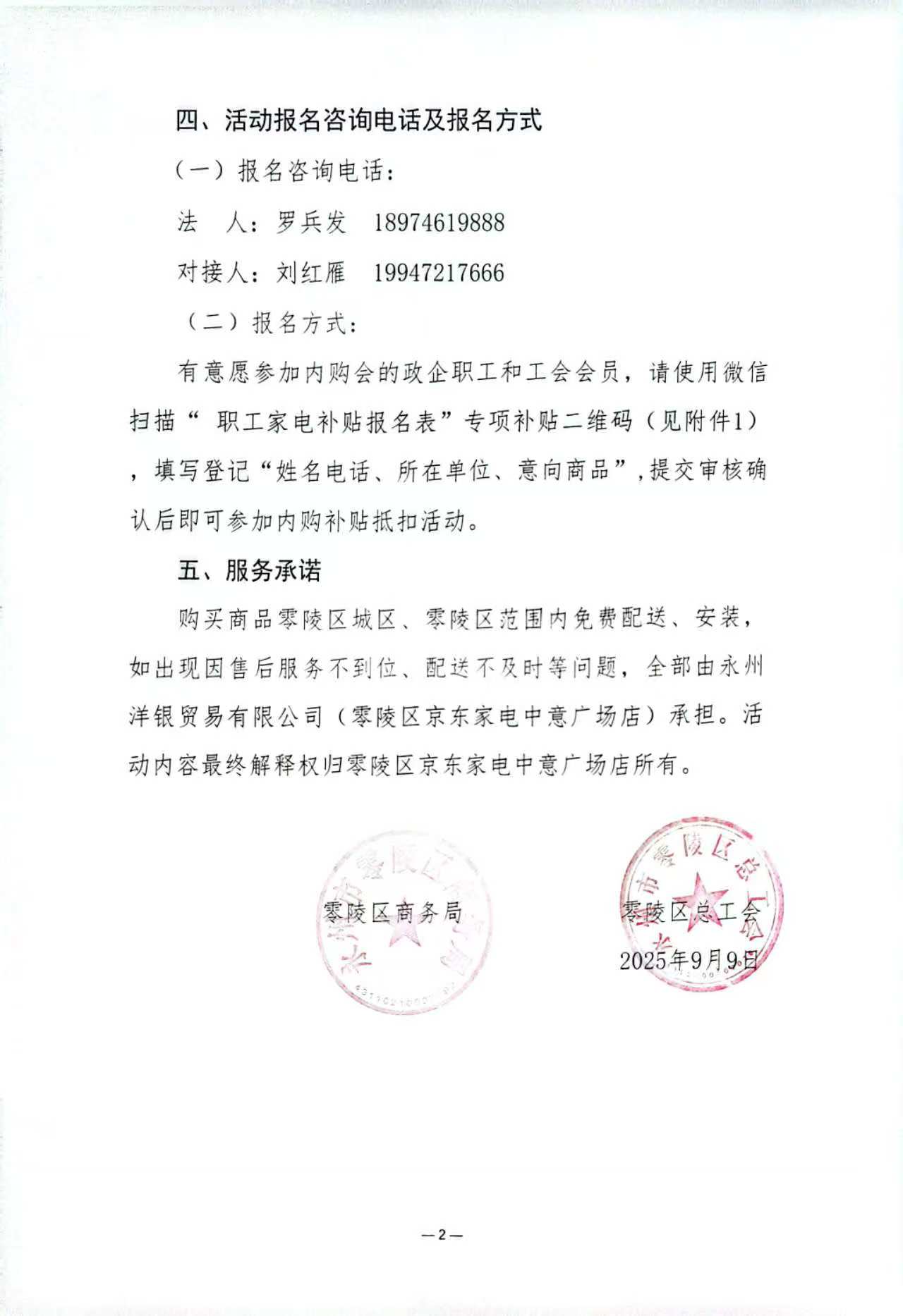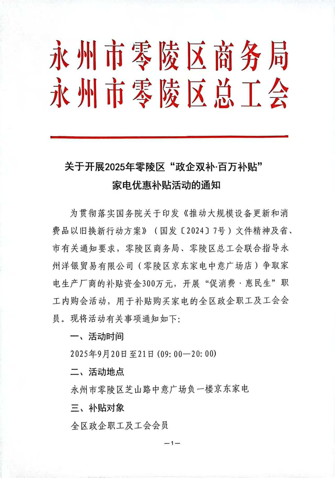 关于开展2025年零陵区“政企双补·百万补贴”家电优惠补贴活动的通知
