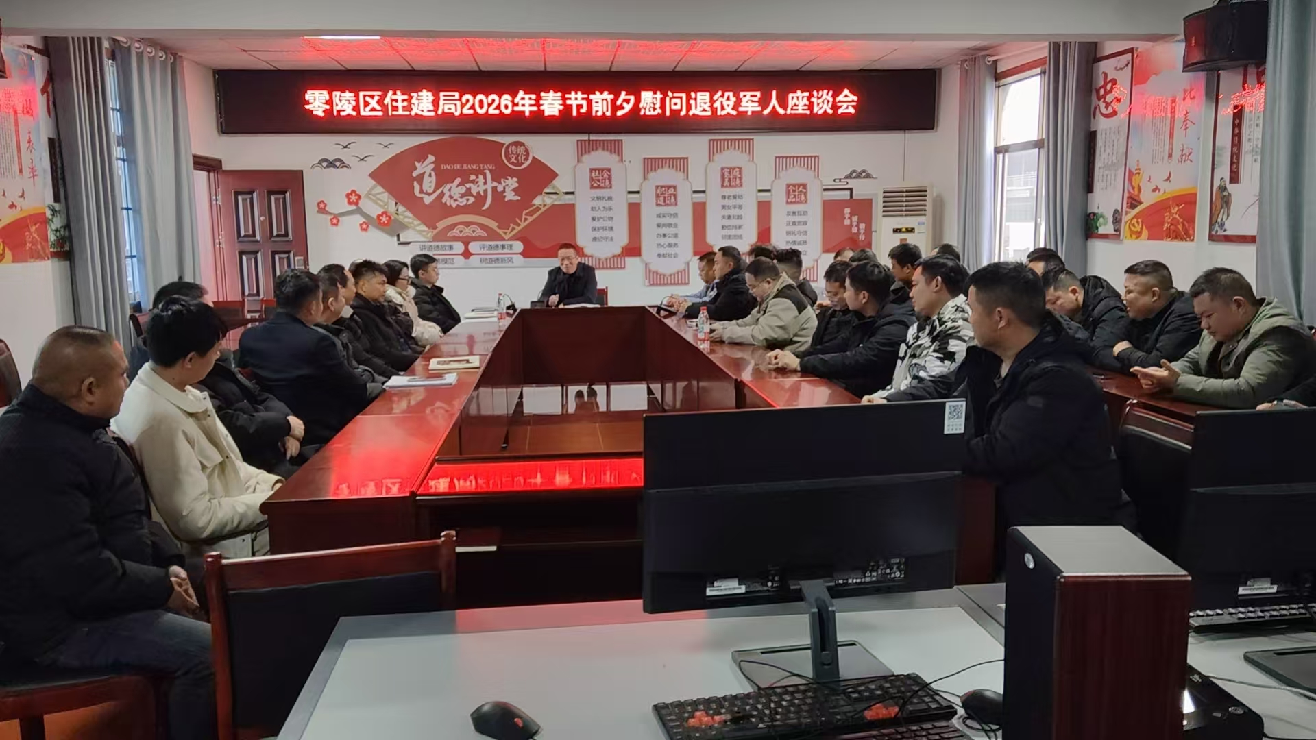 在新春佳节来临之际,为进一步提升退役军人获得感、荣誉感,增加他们干事创业的决心和信心,2月12日,零陵区住建局召开了2026年退役军人春节慰问座谈会。参加会议的有区住建局领导班子成员及全体退役军人。会议由区住建局党组书记、局长秦绍辉主持。