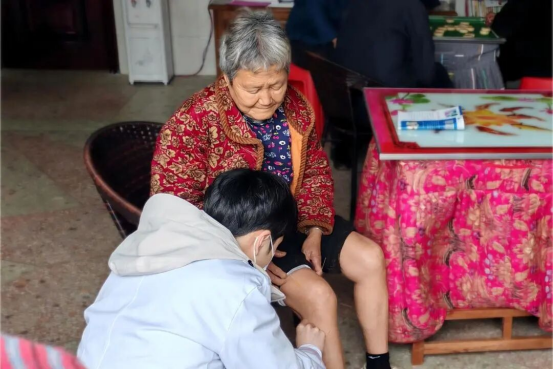 在义诊的另一侧,中医诊疗区同样围满了村民。一位常年受膝关节疼痛困扰的阿姨在接受腿部针灸治疗后,起身走了几步,脸上露出惊喜的笑容:“哎呀,真的轻松多了!太感谢医生了!”