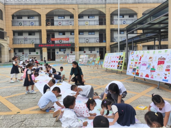 富家桥镇中心幼儿园举行“童心共绘中国梦·月满中秋庆华诞”百米画卷活动