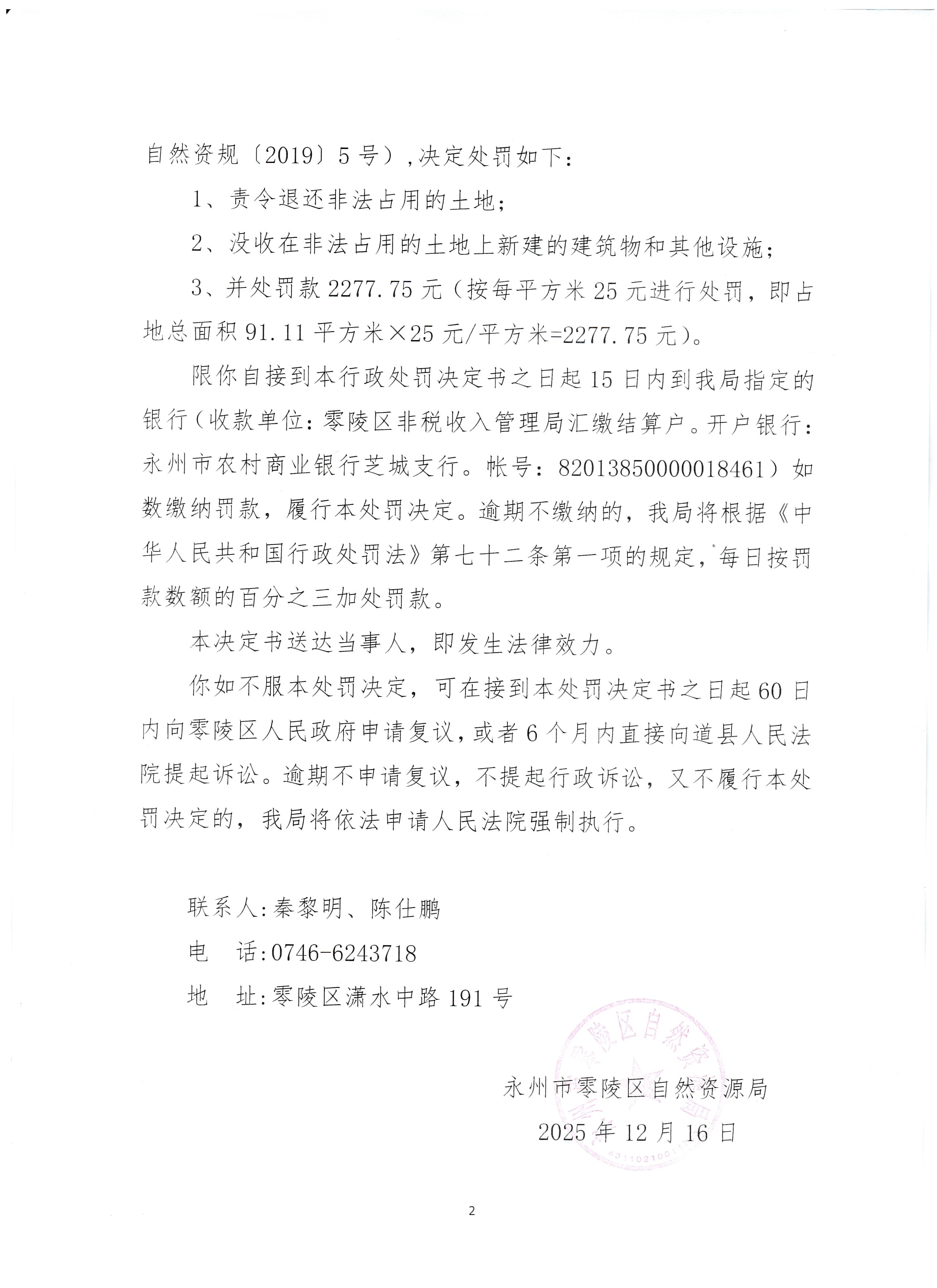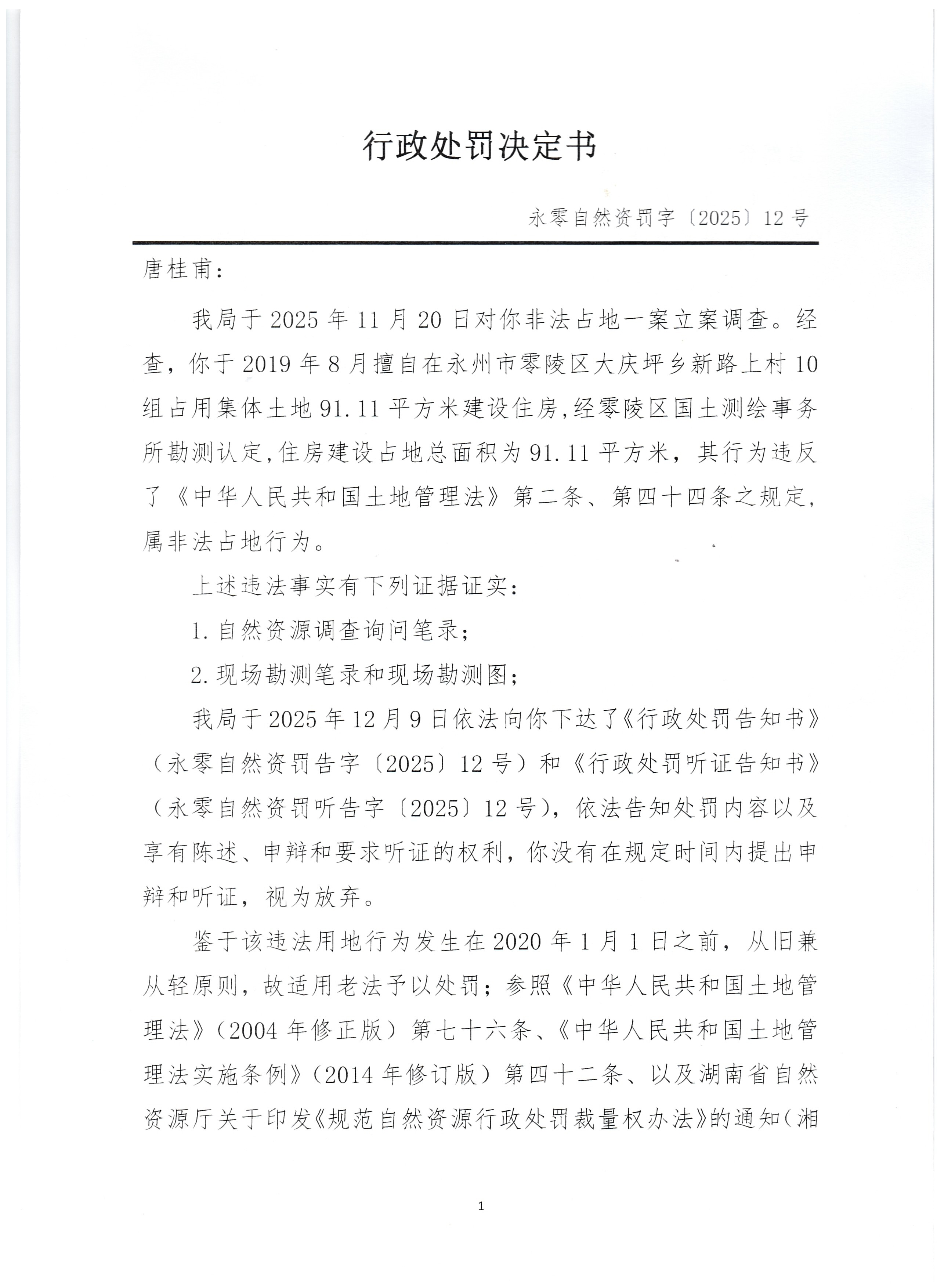 行政处罚决定书(唐桂甫)永零自然资罚字〔2025〕12号