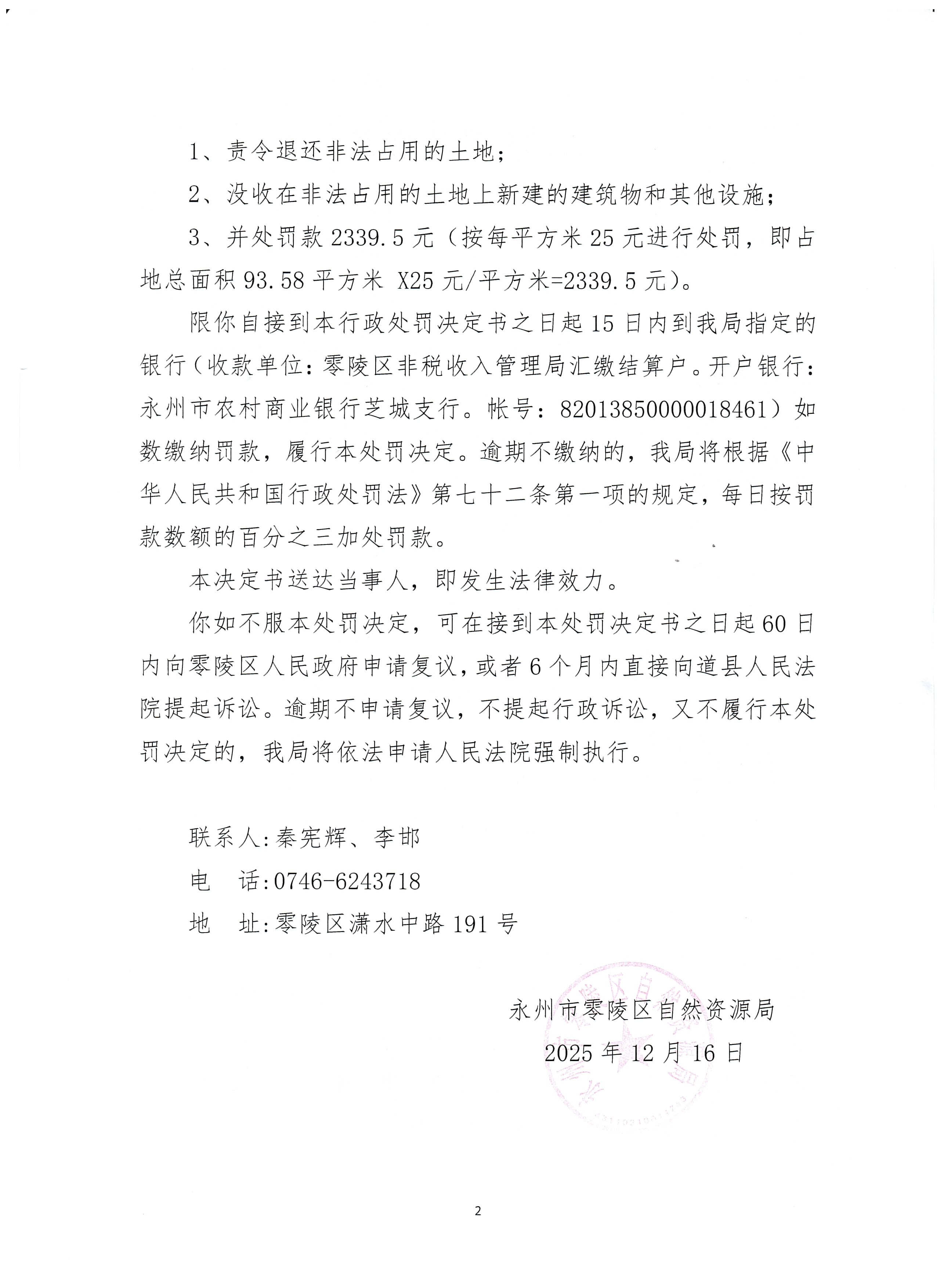 行政处罚决定书(陈金香)永零自然资罚字〔2025〕15号