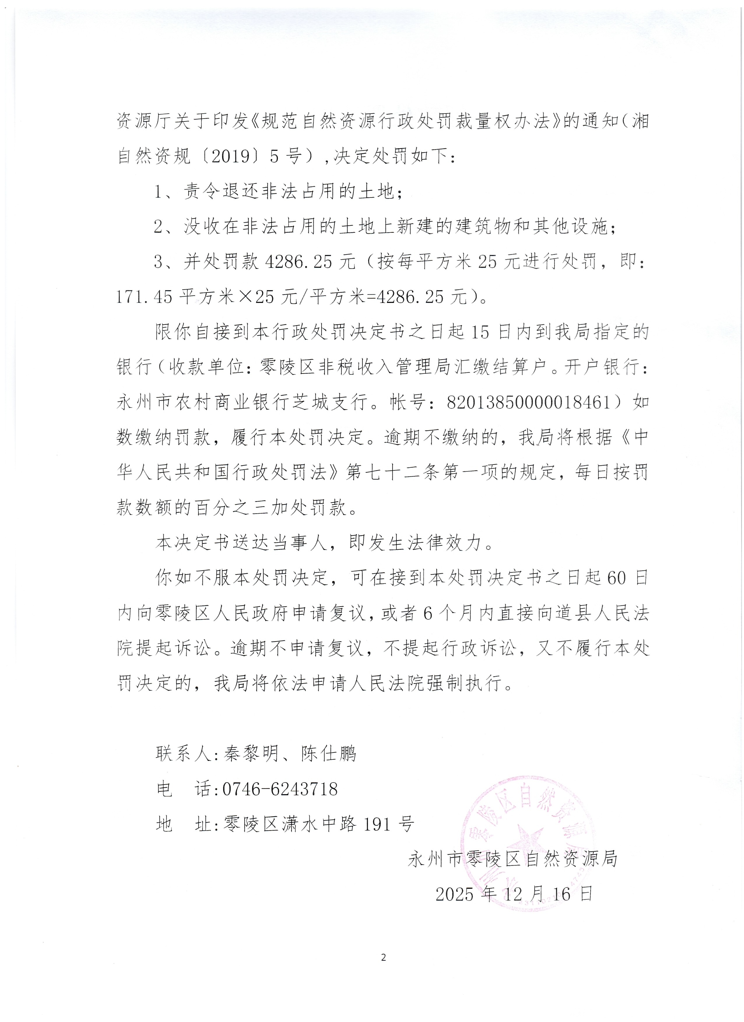 行政处罚决定书(陈美英)永零自然资罚字〔2025〕13 号