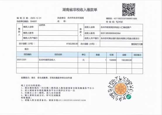 《永州市生态环境局行政处罚决定书》