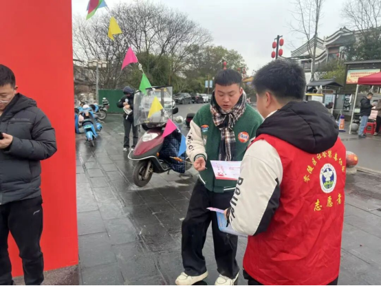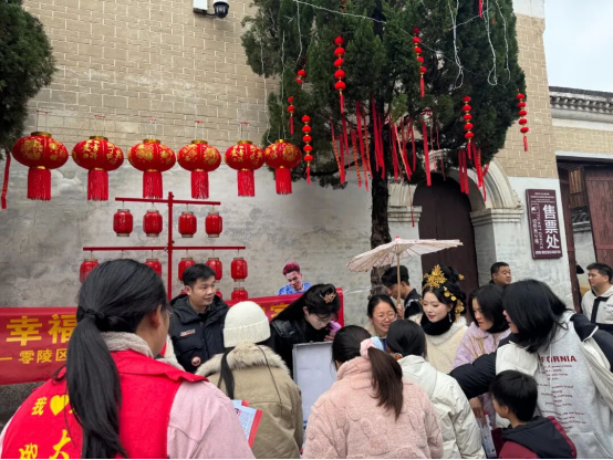 春节的零陵古城,红灯高挂,游人如织。在这喜庆祥和的氛围里,一抹抹“志愿红”格外醒目。