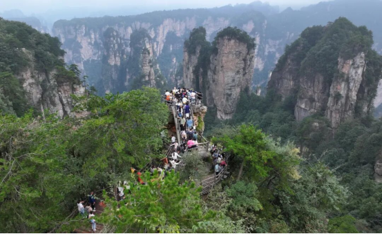 游客在张家界国家森林公园黄石寨景区游览