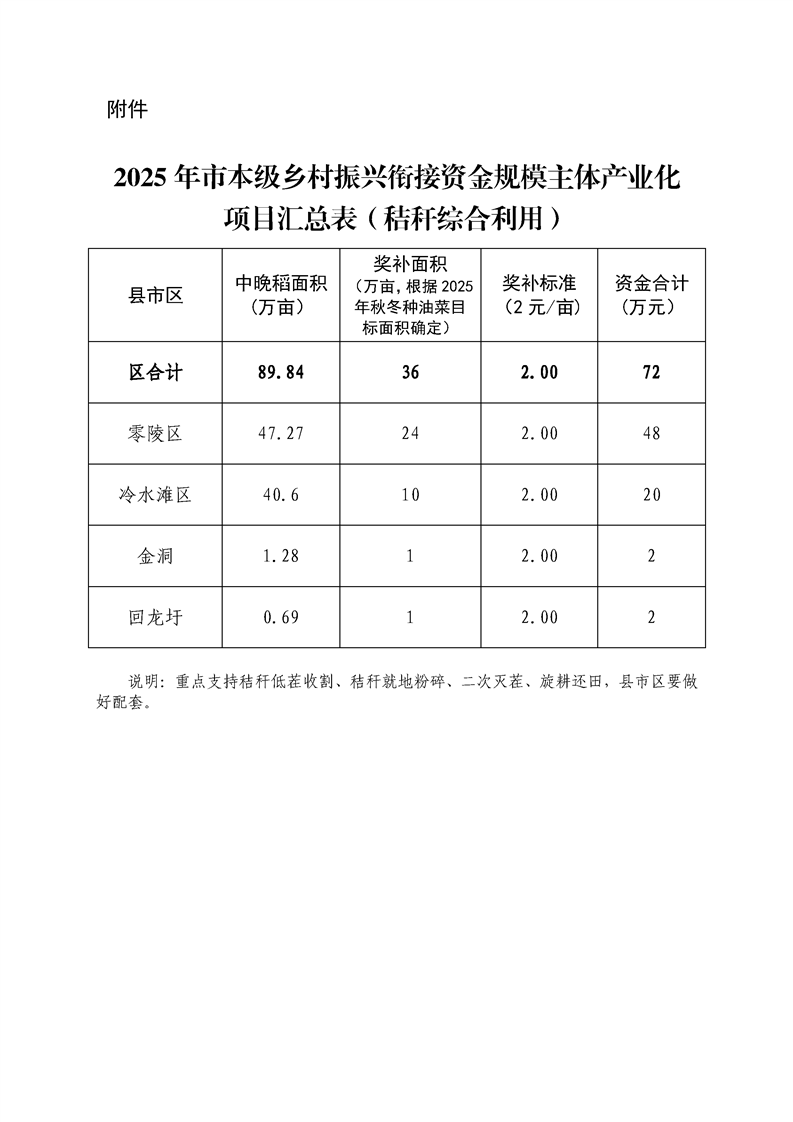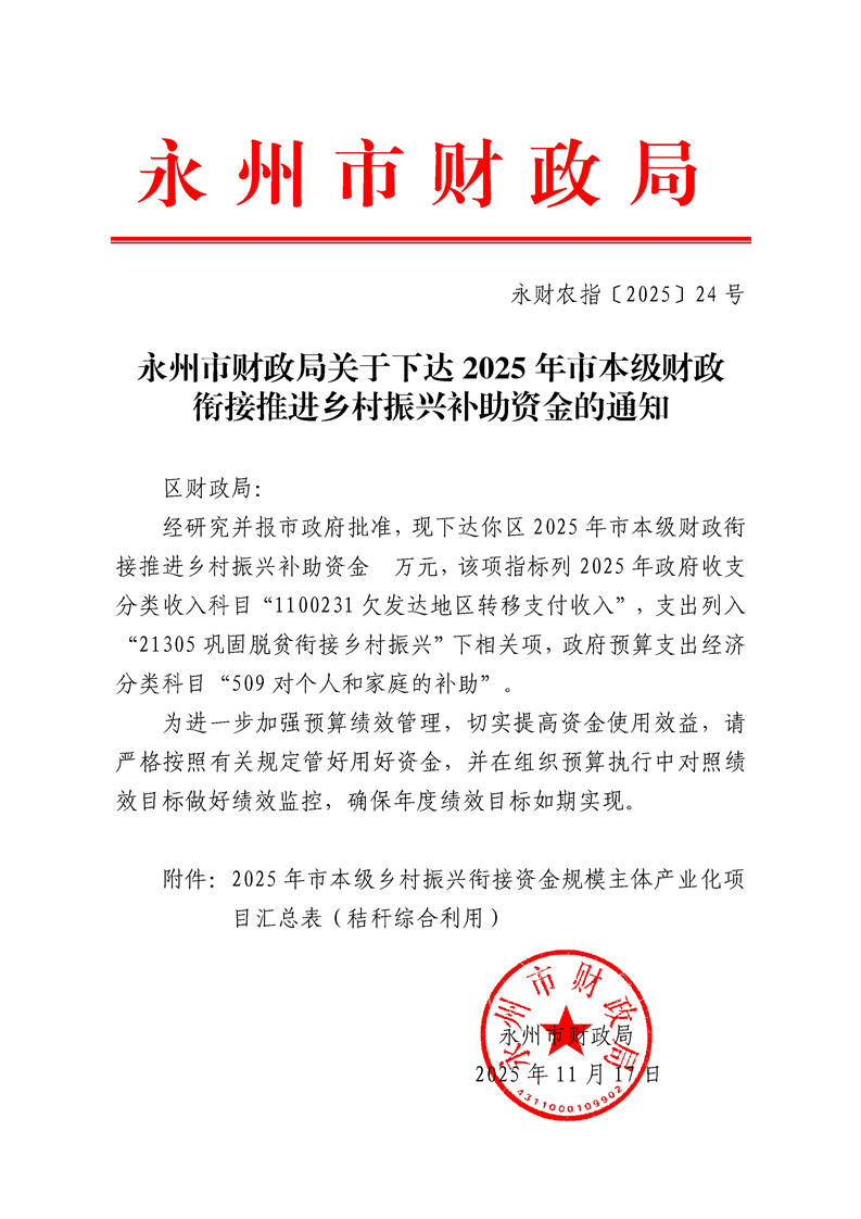 永州市财政局关于下达2025年市本级财政衔接推进乡村振兴补助资金的通知