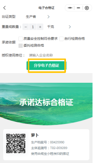 (一)出具无纸化电子合格证对于散装产品,可选择所售产品“电子合格证”选项,按下图操作,向收购商分享出具电子合格证(或者先下载保存后再向收购商发送)。