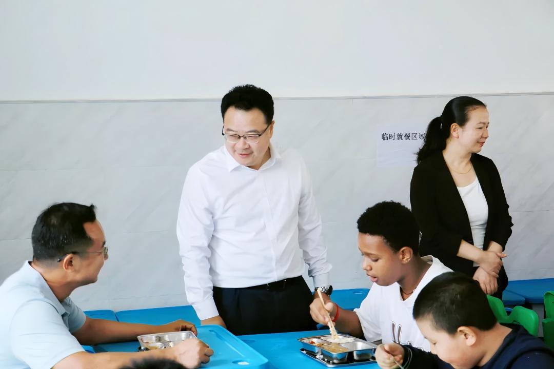 在杨梓塘小学,赵立平实地察看了食堂建设工地,听取相关情况汇报。随后,他走进一间正在用餐的教室,查看学生餐食搭配,亲切询问孩子们饭菜是否可口、送达是否及时,并详细了解配餐企业的资质选定、配送流程及日常监管情况。他强调,“校园餐”是家长牵挂、社会关注的民生大事,在学校食堂建成投用前的过渡期,决不能有丝毫松懈和“将就”思想。学校要切实履行好主体责任,对配餐企业实行严格的资质审查和动态监管,严格落实好陪餐制度,密切关注学生反馈。要在严守质量和安全底线的前提下,进一步加快食堂建设进度,倒排工期、挂图作战,力争早日实现食堂自主运营,确保学生吃得安全、吃得营养、吃得放心。