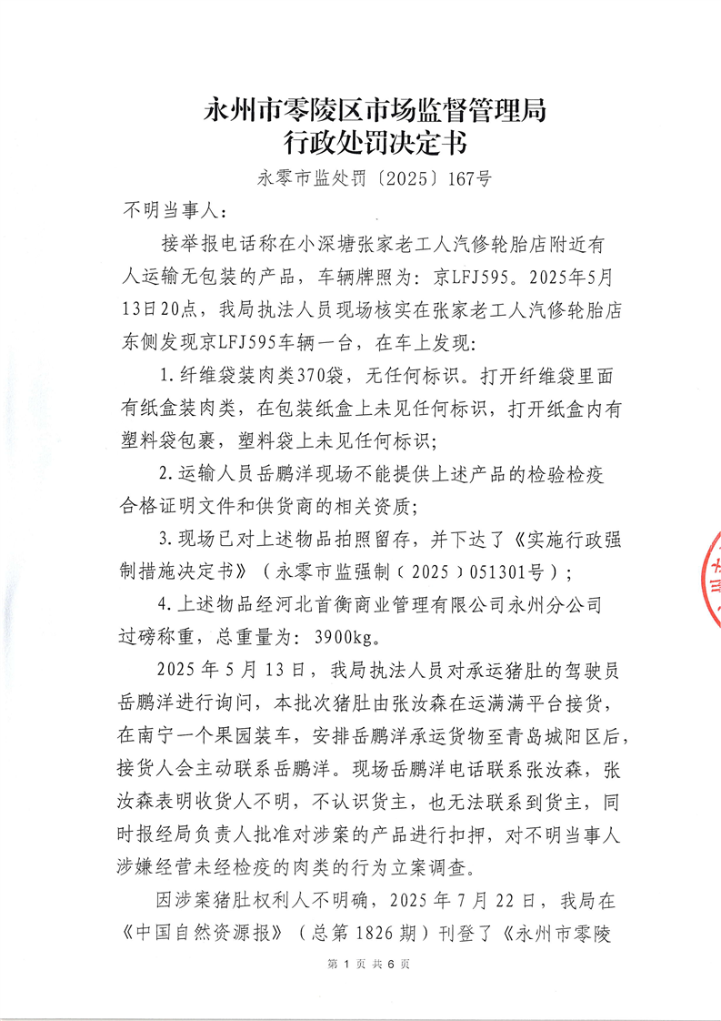 永州市零陵区市场监督管理局 送达公告 永零市监送告〔2025〕122201号