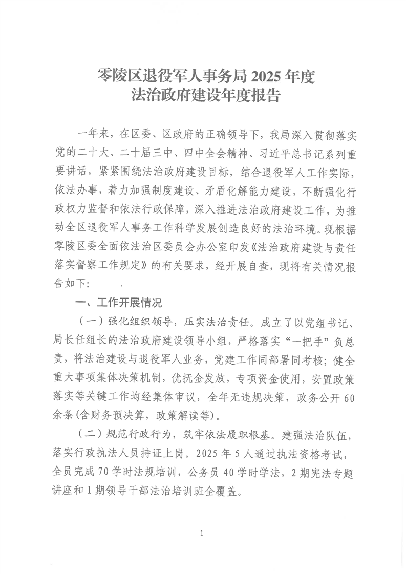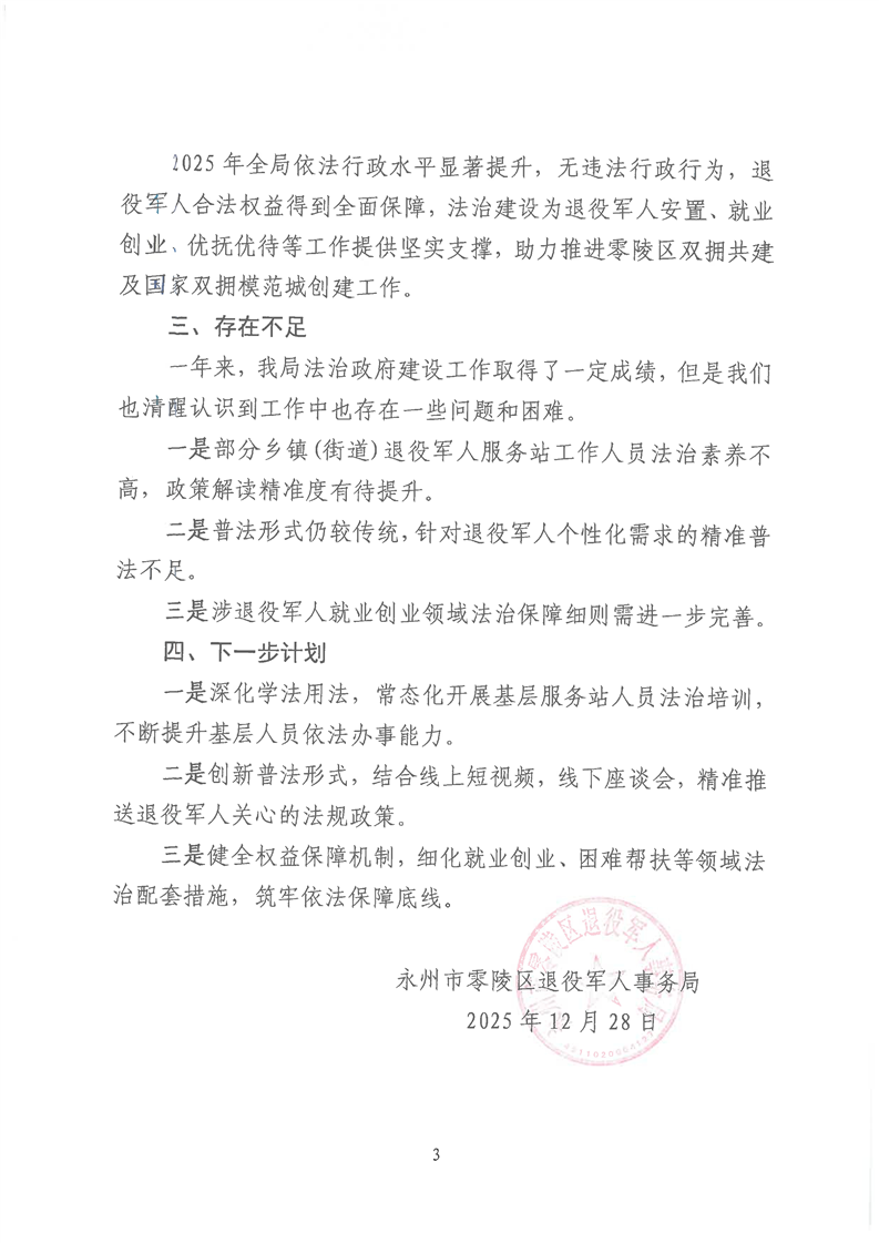 零陵区退役军人事务局2025年度法治政府建设年度报告