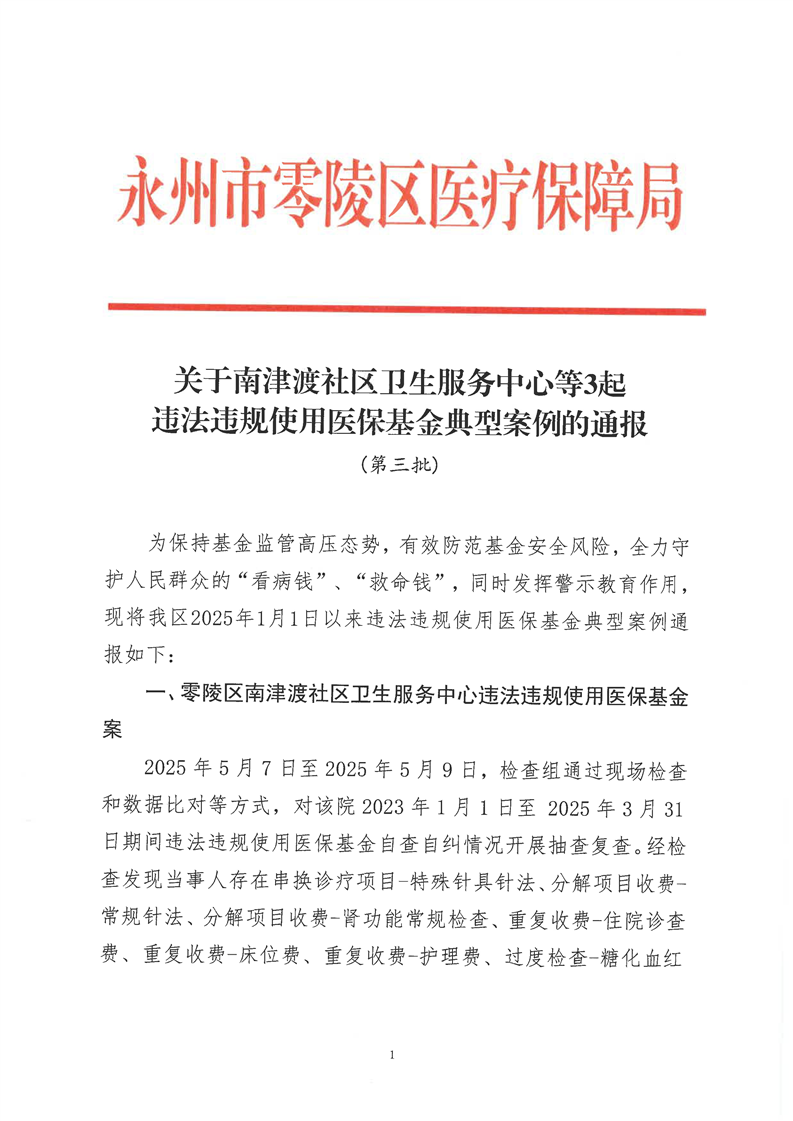 关于南津渡社区卫生服务中心等3起违法违规使用医保基金典型案例的通报
